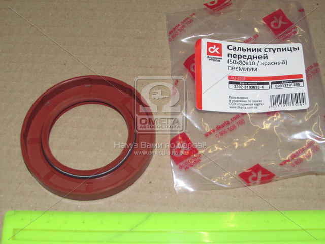 Сальник маточини передньої ГАЗ 3302 50х80х10 червоний ПРЕМИУМ <ДК>